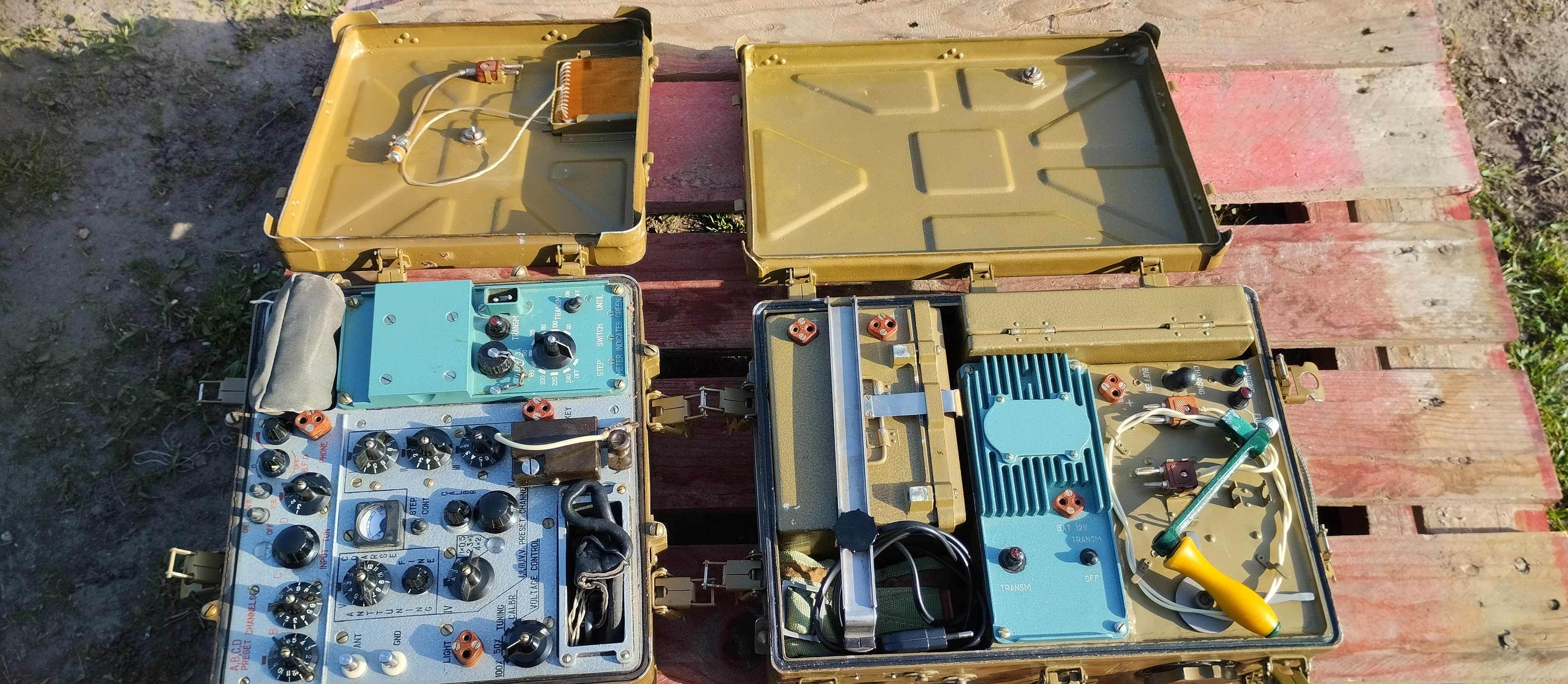 3-23 MHz, CW, made for export, Soviet spy transceiver. ~10W.